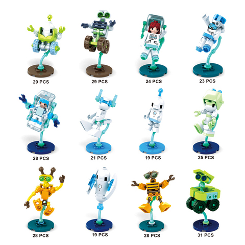 Da collezione 12 pezzi Mini spazio Robot serie figure in plastica mattoni costruibili giocattoli per bambini collezione sorpresa