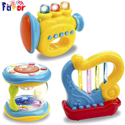 3つのトランペット、ドラムとハープの音楽玩具のバッテリー、赤ちゃんの学習と娯楽のための楽器の卸売セット